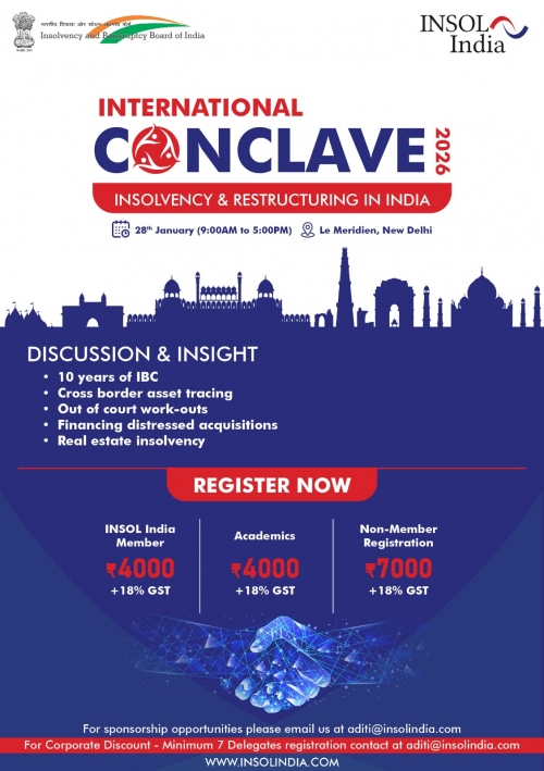 The Third Edition of the International Conclave, jointly organised by the Insolvency and Bankruptcy Board of India (IBBI) and INSOL India, will be held on 28 January 2026 at Le Meridien, New Delhi.